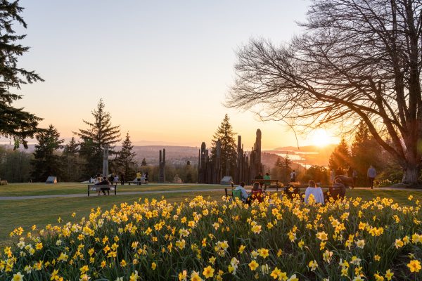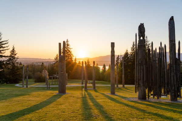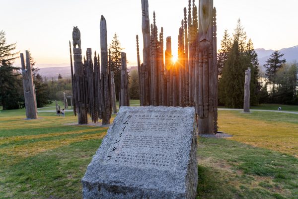 The poles were created by Ainu sculptors Nuburi and son Shusei Toko, members of Japan’s aboriginal people. Kamui Mintara is a symbol of the goodwill between Burnaby and its sister city, Kushiro, Japan.